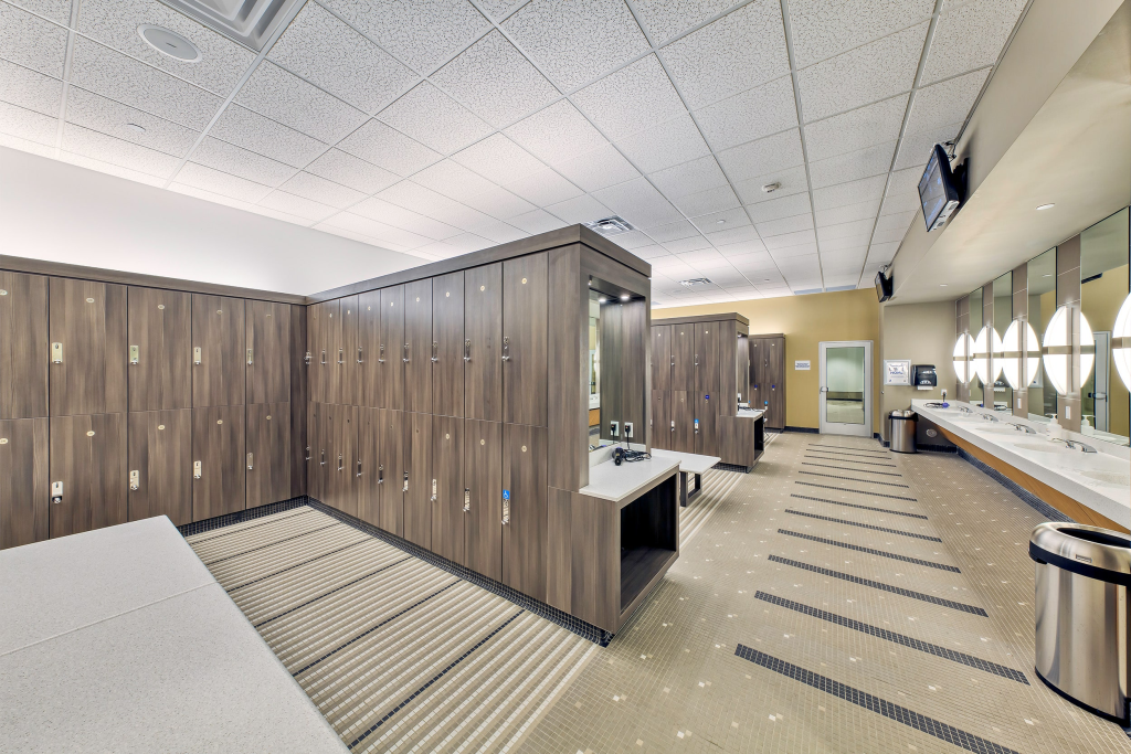 Locker rooms are spacious with high quality showers, grooming stations, complimentary toiletries, and larger heated indoor pools alongside dedicated Pilates or yoga areas.